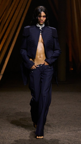 For his first womenswear-only showcase, McGirr delivered a vision that was both haunting and sensual, rooted in strength and freedom. "I want there to be an immediacy to it all.” He said, “I like things which are imperfectly perfect. It gives a bit of life to them, a bit of energy." The collection unfolded like a film in motion, each look revealing another chapter of McGirr’s darkly romantic narrative.