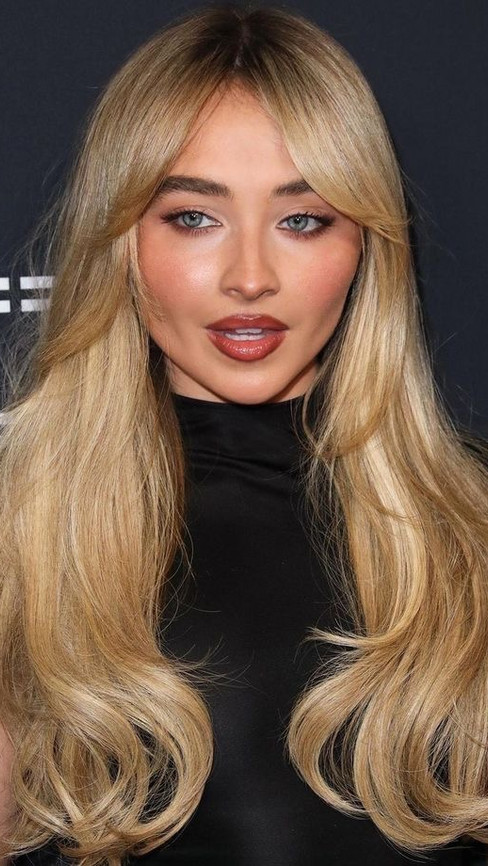 In order to get Sabrina’s full blowout look, it could be helpful to use a root lifting spray to create volume on the top of the head. To add more volume overall, some tape in or clip in extensions would look amazing and make the hair look full and healthy. After blow drying your hair with a medium size brush, go over some pieces with a medium curling iron to create more volume and movement. Brush out the curls afterwards and you are ready to go!