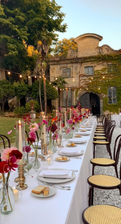Consider lush floral arrangements, like roses or peonies, paired with candles to create an inviting and cozy atmosphere. For a festive touch, add elements like metallic accents—gold, silver, or copper—that shine in the soft light of the room. Whether indoors or outdoors, string lights or candles can create a magical ambiance that feels intimate yet grand.